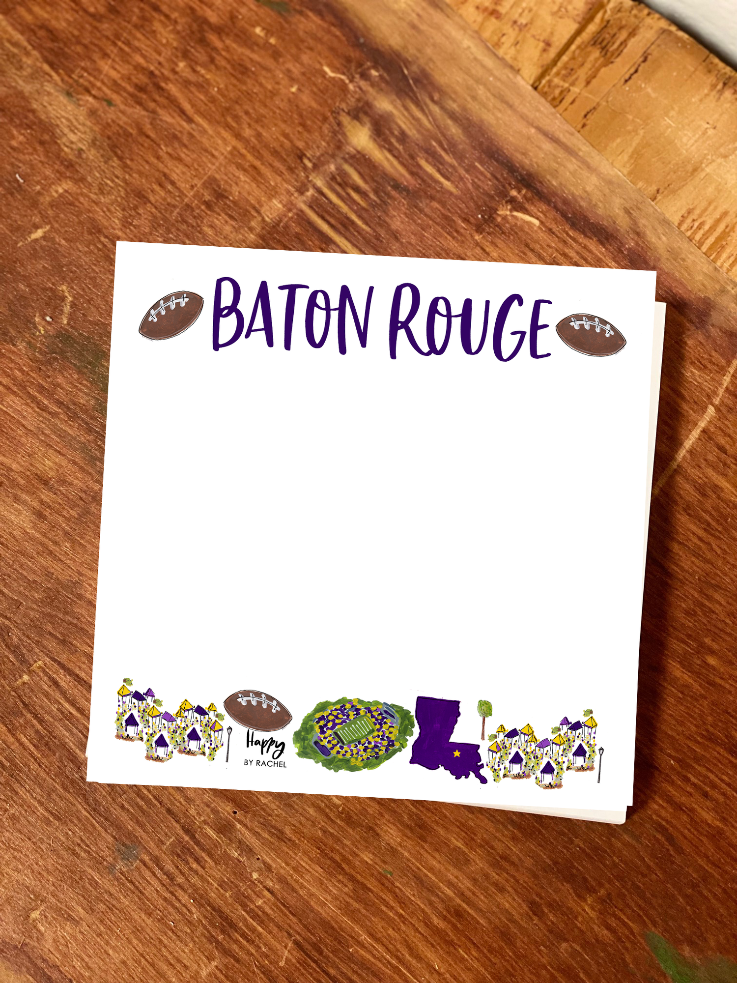 Jot down your notes on this cute Baton Rouge notepad! Makes a great gift! Measures 5"x5" and contains 100 pages.
