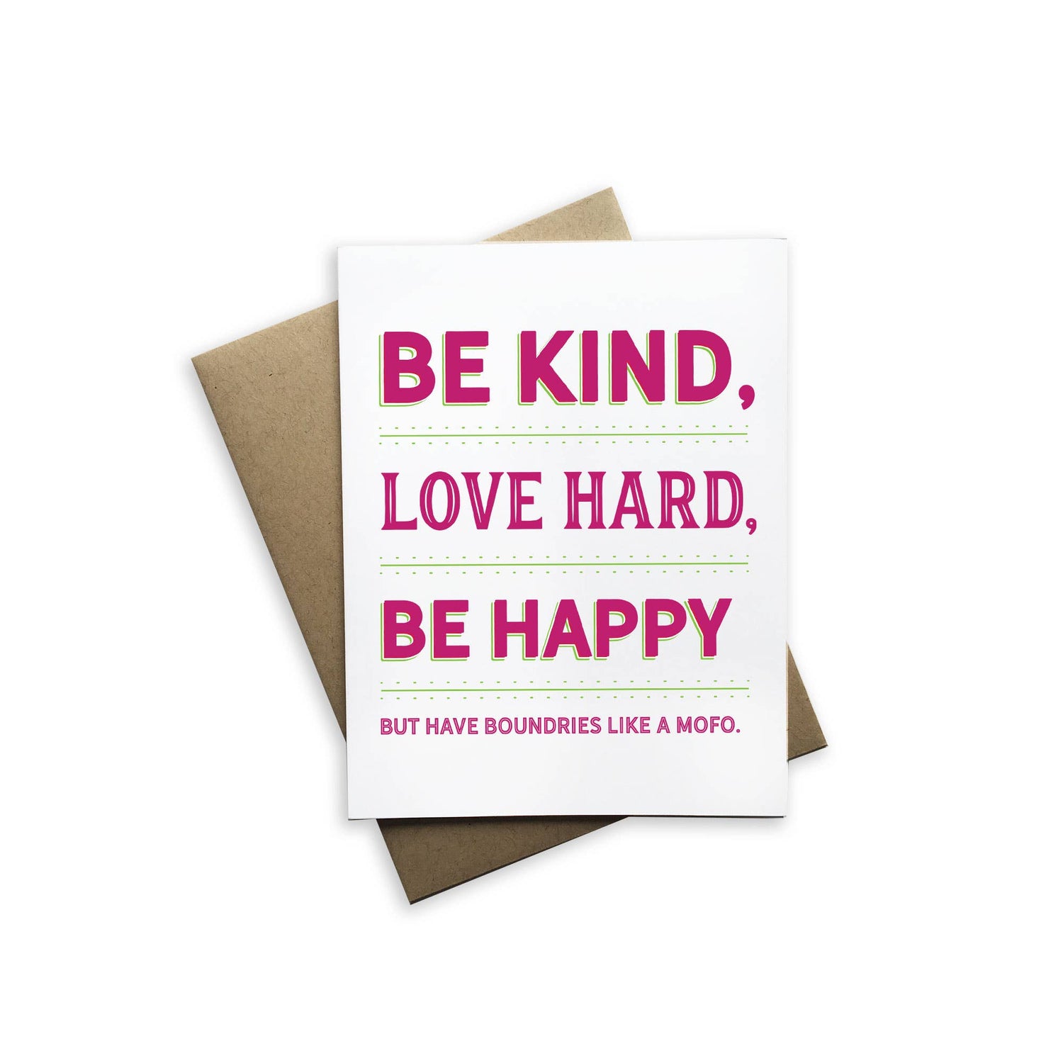 Size: 4.25" by 5.5" folded - A2 Material: Each card is printed on 100lb cover stock with a kraft envelope. Inside: Blank for a sassy message.