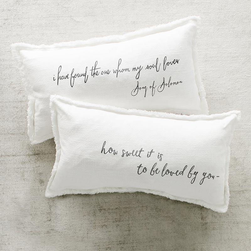 Words written on fabric that will make you think of sweet things of consequence. 22x12 lumbar pillow with down insert and hidden zipper.