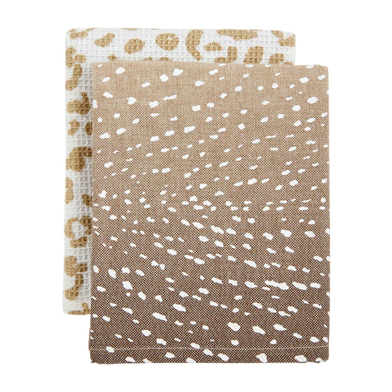 Our Fawn and Leopard Hand Towel Set is so trendy! The set comes with two chambray and waffle weave hand towels. One towel features a tan and white fawn pattern. The other towel features a tan and white leopard print pattern. This towel is the perfect way to introduce a subtle pop of animal print to your kitchen.