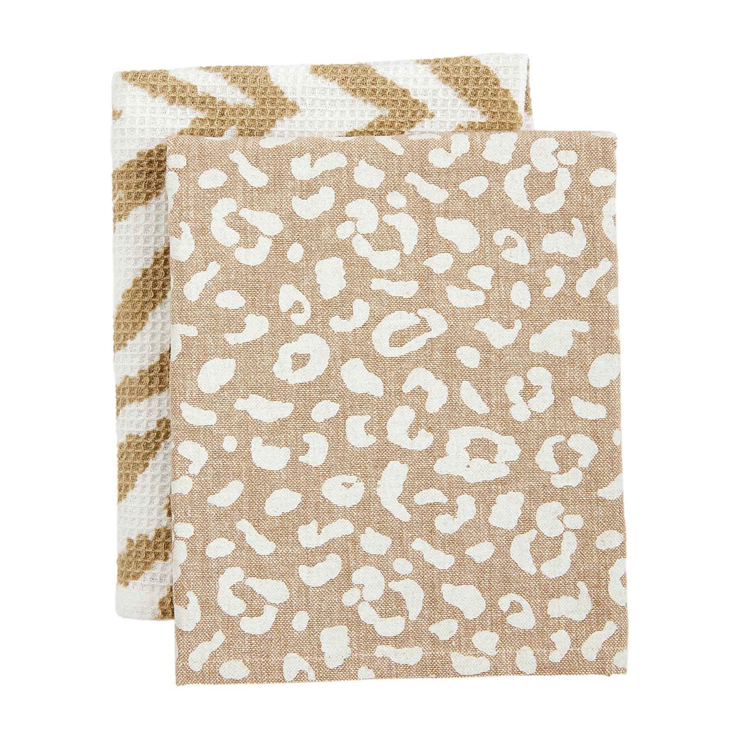 Our Leopard and Zebra Hand Towel Set is so trendy! The set comes with two chambray and waffle weave hand towels. One towel features a tan and white zebra pattern. The other towel features a tan and white leopard print pattern. This towel is the perfect way to introduce a subtle pop of animal print to your kitchen.