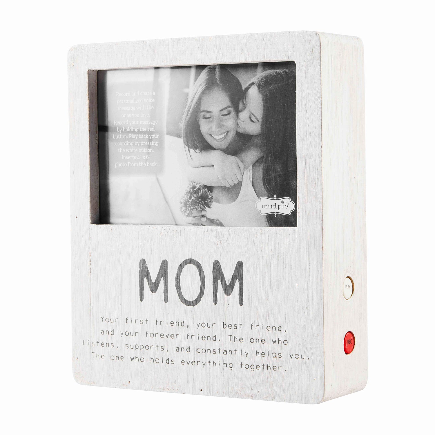 Our Mom Voice Recorded Picture Frame is the perfect memory maker. The wooden 4" x 6" frame features side buttons that record and play voice messages. The front of the frame reads "Your first friend, your best friend and your forever friend. The one who listens, supports and constantly helps you. The one who holds everything together"