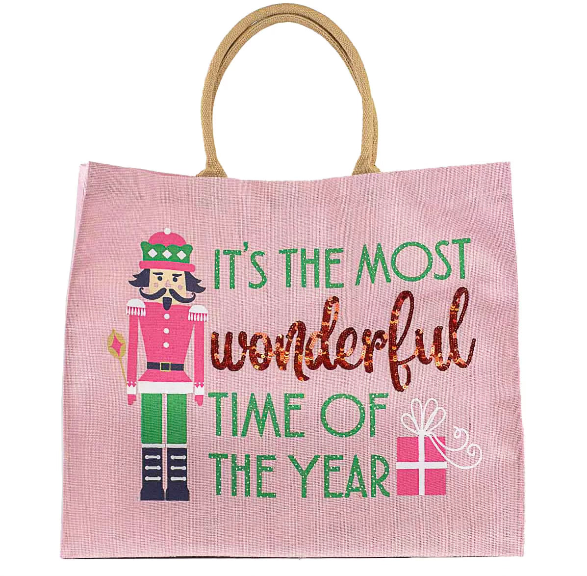 Spread holiday cheer and replace your average gift bag with a reusable gift tote made of woven jute.