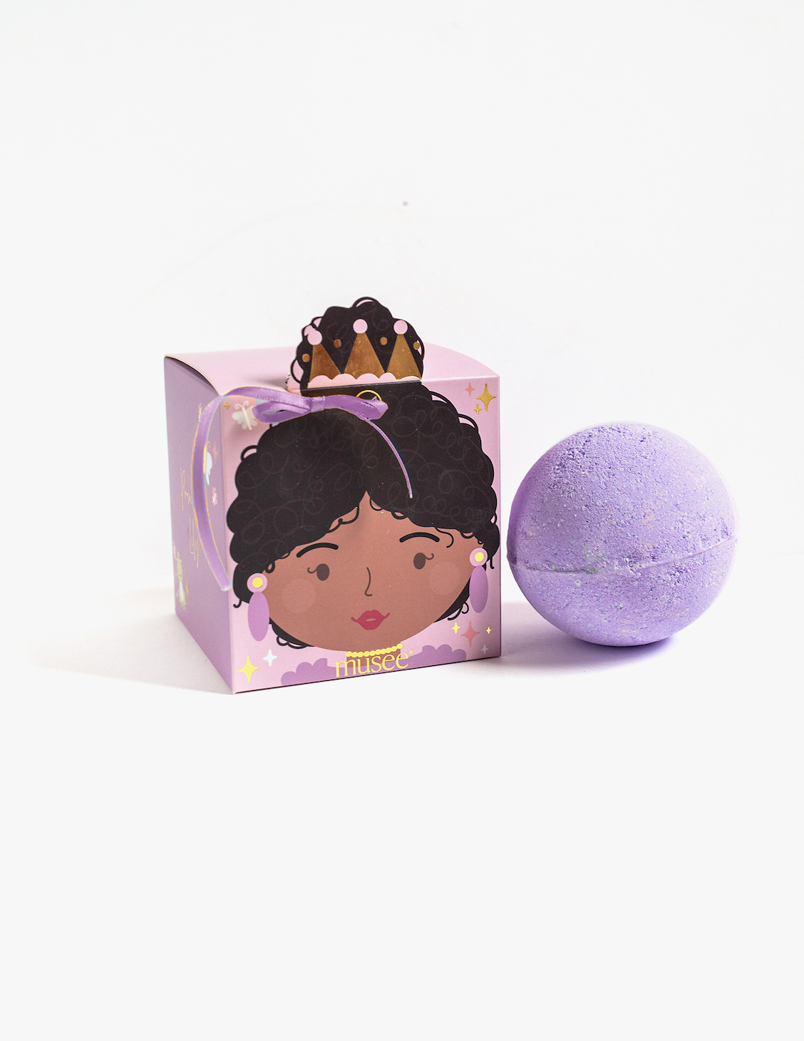 Create the most enchanting bath time with Princess Lily! As you soak in the swirls of lavender waters, pretend you are a princess too! Discover a magical ring when the bath balm dissolves! Try all of our Musee Princess Bath Balms to collect all of the special treasures inside! Sodium Bicarbonate, Citric Acid, Natural Apricot Oil, Lavender Essential Oil, Fragrance, and Coloreze. Surprise - Princess Ring