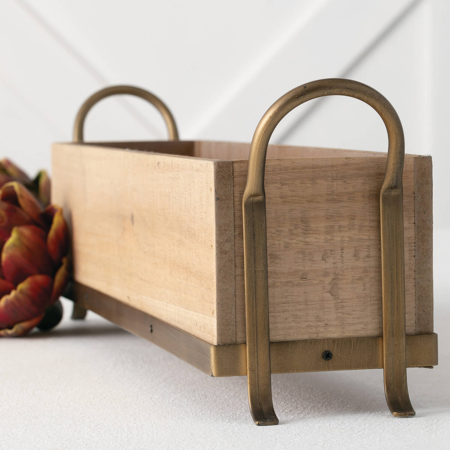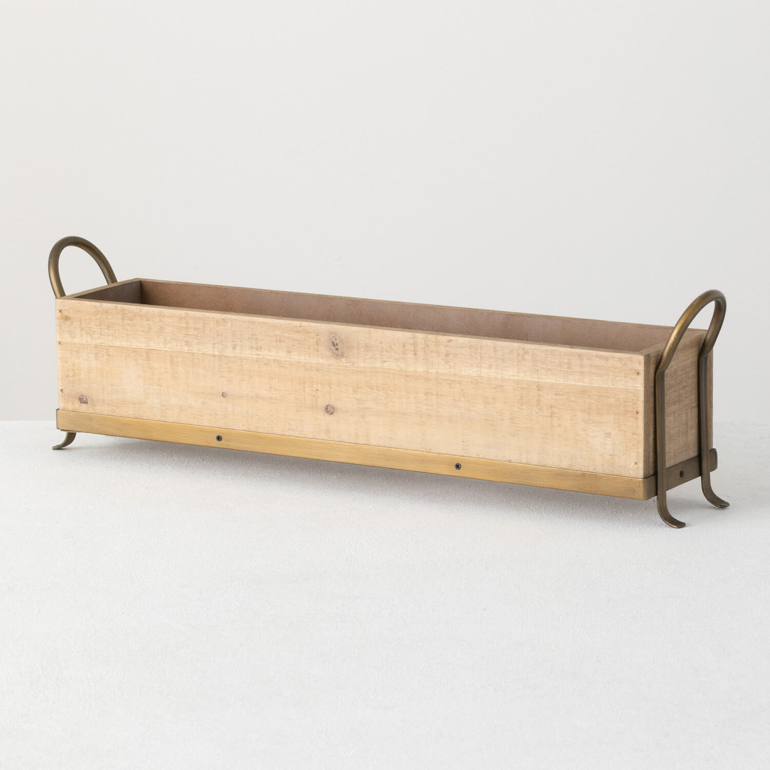 This natural-finished wooden table planter is a versatile design piece in any space. At 4.25" wide by 6.25" height, this planter has handles at each end of this 19.75" long beauty.